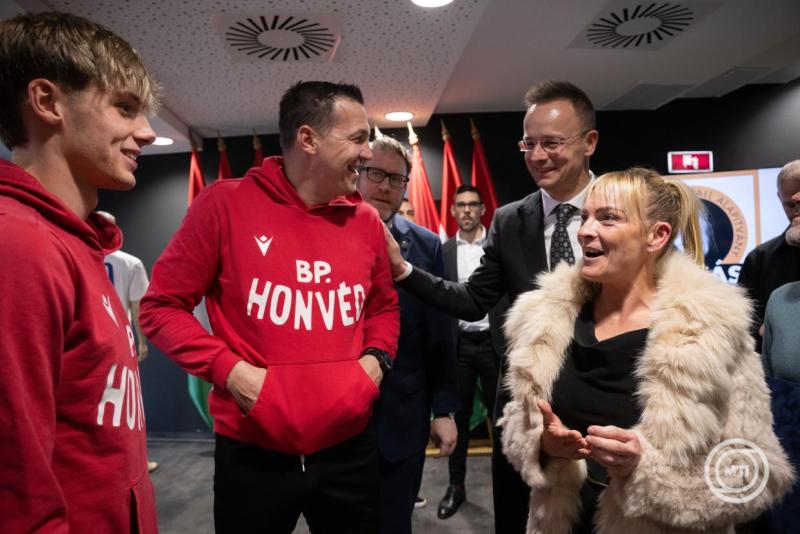 Borítókép: Budapest, 2026. április 2. Szijjártó Péter külgazdasági és külügyminiszter, a Budapest Honvéd FC elnöke és Isabel Damborena Puskas, Puskás Ferenc unokája az állampolgársági ünnepségén a Bozsik Arénában 2026. április 2-án. MTI/Szigetváry Zsolt