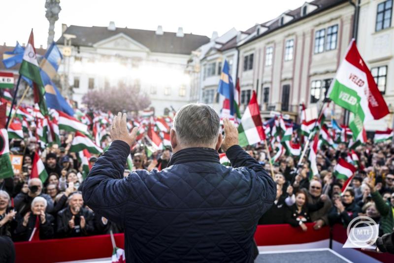 Borítókép: Sopron, 2026. április 8. A Miniszterelnöki Kommunikációs Főosztály által közreadott képen Orbán Viktor miniszterelnök, a Fidesz elnöke (háttal) országjárásának soproni állomásán, a Fő téren 2026. április 8-án. MTI/Miniszterelnöki Kommunikációs Főosztály/Kaiser Ákos