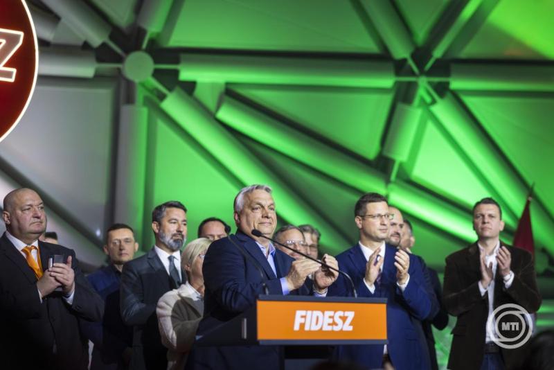 Borítókép: Budapest, 2026. április 12. A Miniszterelnöki Kommunikációs Főosztály által közreadott képen Orbán Viktor miniszterelnök, a Fidesz elnöke (k) beszédet mond a Fidesz-KDNP eredményváró rendezvényén az országgyűlési választást követően a Bálna Honvédelmi Központban 2026. április 12-én. MTI/Miniszterelnöki Kommunikációs Főosztály/Kaiser Ákos