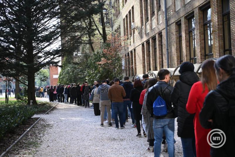 Borítókép: Budapest, 2026. április 12. Szavazásra várakozók állnak sorban az országgyűlési választáson a budapesti Szent István Gimnáziumnál, az átjelentkezőknek kialakított szavazókörnél 2026. április 12-én. MTI/Kovács Attila