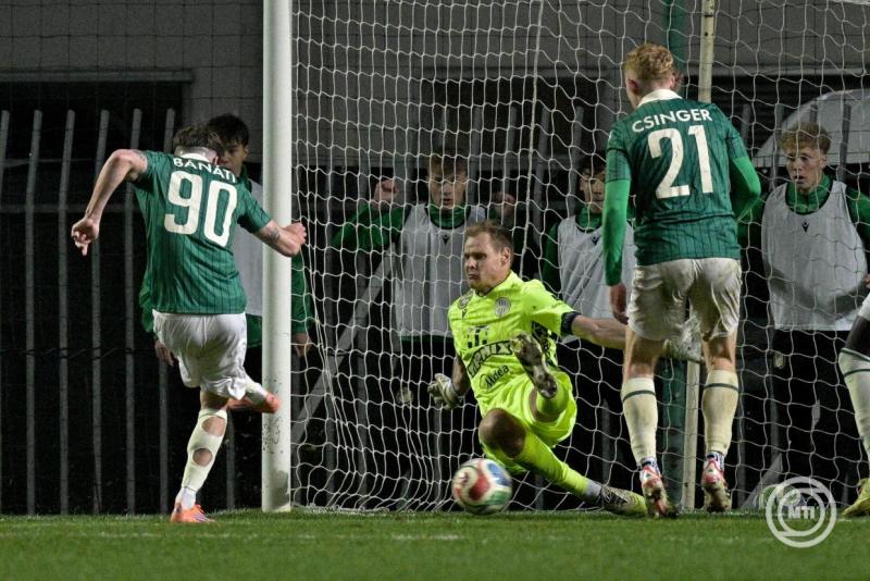 Az egyre feszültebb és keményebb mérkőzés hajrájának kezdetén ugyanis egy szögletvariáció végén Dibusznak kellett védenie, ám a labdát az ötösnél helyezkedő Bánáti elé ütötte, aki habozás nélkül a hálóba lőtt.