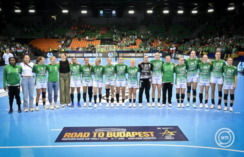Borítókép: Győr, 2026. április 25. A győztes győri csapat játékosai ünnepelnek a női kézilabda Bajnokok Ligája negyeddöntőjének visszavágóján játszott Győri Audi ETO KC - Odense HB mérkőzés után a győri Audi Arénában 2026. április 25-én. A címvédő Győri Audi ETO KC 40-25-re nyert és bejutott a négyes döntőbe. MTI/Krizsán Csaba