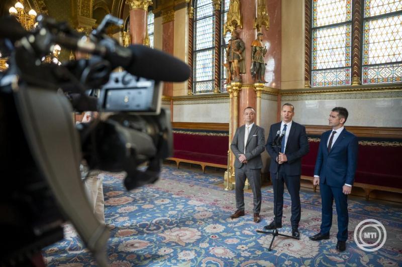 Borítókép: Budapest, 2026. április 28. Apáti István, a Mi Hazánk delegációjának tagja sajtótájékoztatót tart az Országgyűlés alakuló ülését előkészítő újabb tárgyalás után az Országházban 2026. április 28-án. MTI/Balogh Zoltán