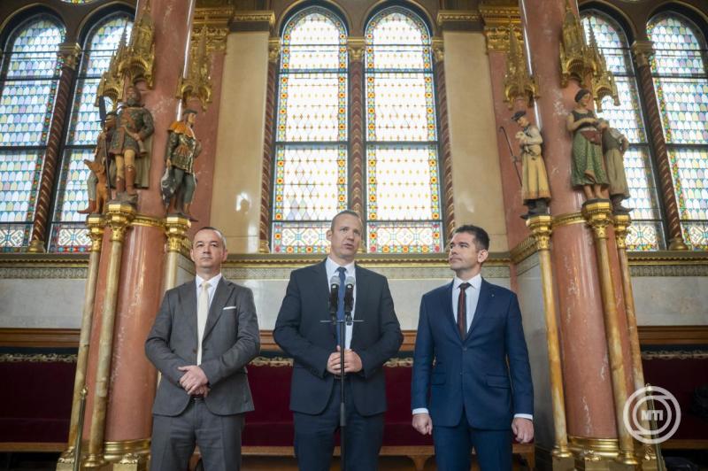 Közlése szerint míg hétfőn "a Fidesz-KDNP kétharmada által megválasztott" közjogi méltóságok alkotta Szent Korona Testület nem járult hozzá, hogy erre az alkalomra a parlament üléstermébe vigyék a koronát, most a Tisza delegációja utasította el, hogy az Országház kupolacsarnokában kerüljön sor erre az ünnepélyes eskütételre aktusra.